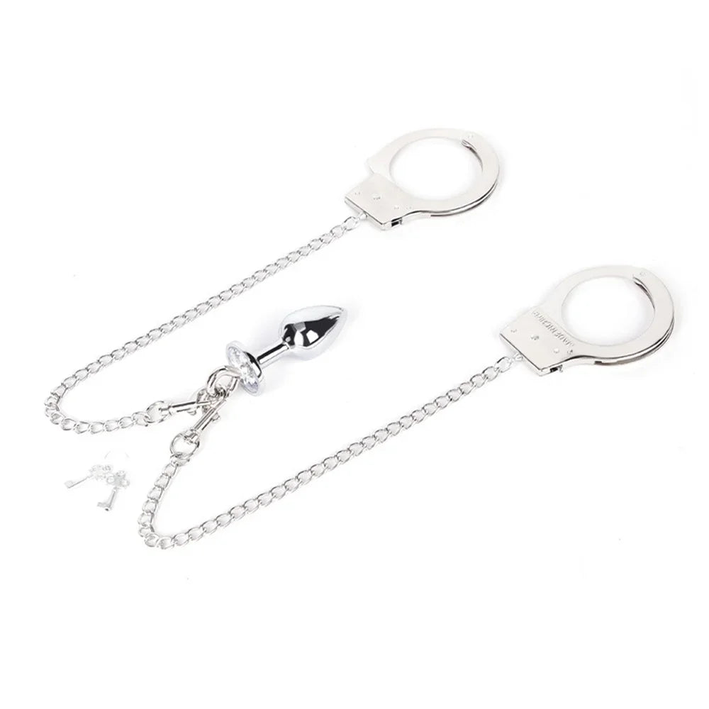Metal Anal Plug Vagina Dilator Butt Plug Chain Lockable Handcuffs Bondage Bdsm Sex Toys for Adults Men Women Couple Sexy Games